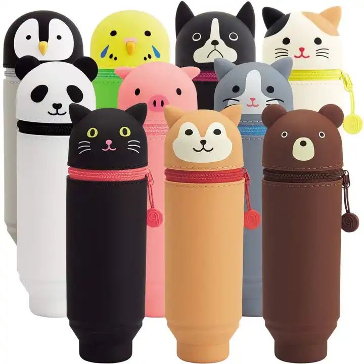 2023硅胶立式笔袋可爱动物脸学校铅笔袋袋儿童定制彩色铅笔袋